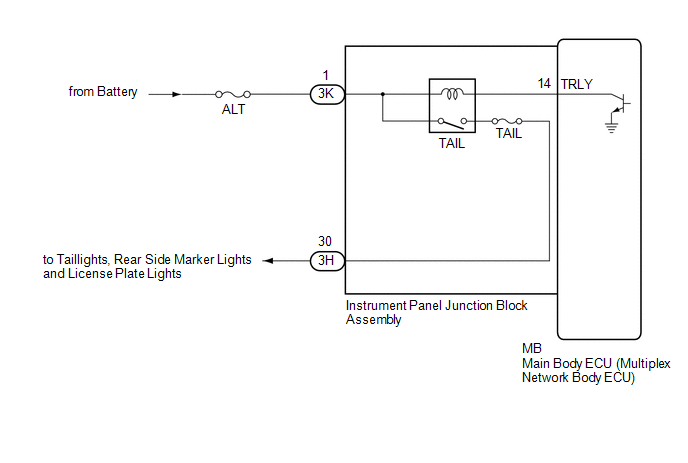 The main body ECU (multiplex network body ECU) controls the operation of the TAIL relay.