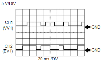 Camshaft Position Sensor Signal | ECM Terminal Name | CH1: Between VV1+ and VV1- CH2: Between EV1+ and EV1- |