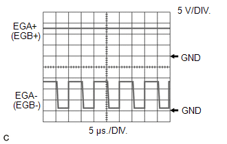 EGR Valve Assembly Operation Signal | ECM Terminal Name | CH1: Between EGA+ and E1 CH2: Between EGA- and E1 |