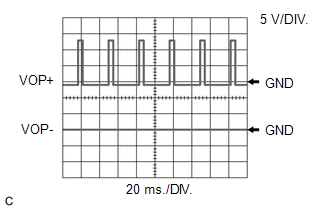 Oil Pressure Control Valve Operation Signal | ECM Terminal Name | CH1: Between VOP+ and E1 CH2: Between VOP- and E1 |
