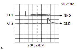 No. 1 (to No. 4) Direct Fuel Injector Assembly Signal | ECM Terminal Name | CH1: Between #1D+ and E1 CH2: Between #1D- and E1 |