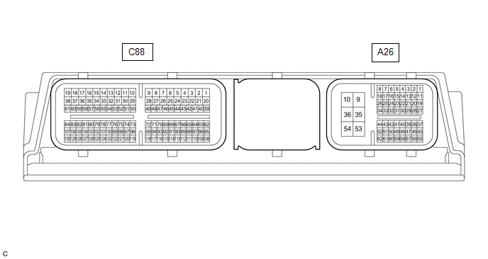 | C88-94 (A1A-) - A26-10 (E1) | G - W-B | Air fuel ratio sensor (sensor 1) signal | Power switch on (IG) | 1.24 to 4.22 V |