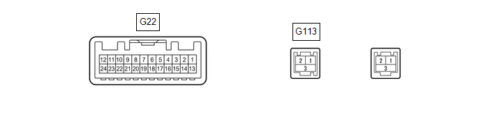 | G22-3 (REV) - G22-13 (GND1) | P - LA | Reverse signal | Engine running, shift lever not in R → in R | 3.5 V or higher → Below 1 V |