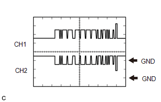 | y16-25 (CA1H) - y16-27 (GND) | B - W-G | IN/OUT | CAN communication line | Power switch on (IG) | Pulse generation (Waveform 3) |