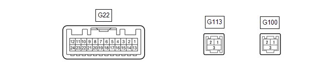 | G22-2 (ILL) - G22-13 (GND1) | LA-R - LA | Illumination signal | Power switch off Light control switch off | Below 1 V |