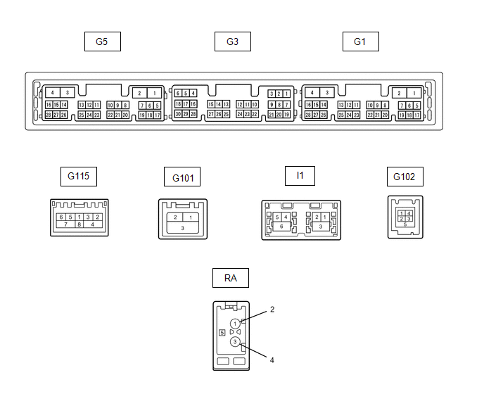 | RA-5 (ANT+) - G5-1 (GND1) | - - W-B | Power source of antenna | Power switch on (ACC) Radio switch on and AM or FM selected | 11 to 14 V |