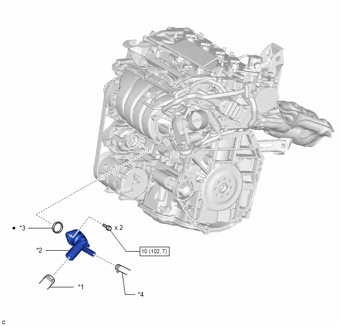 | *1 | NO. 2 RADIATOR HOSE | *2 | WATER INLET WITH THERMOSTAT SUB-ASSEMBLY |