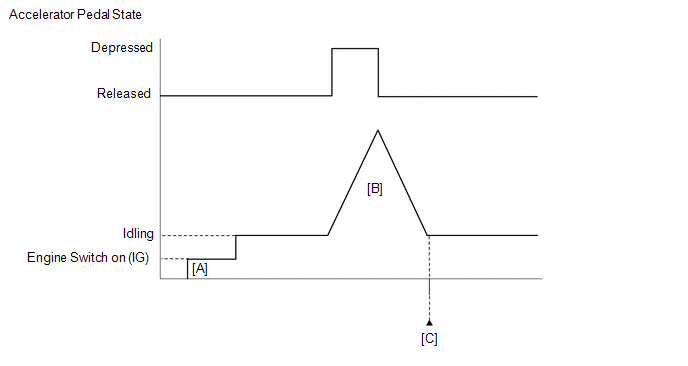 When any of these DTCs or other DTCs relating to Electronic Throttle Control System (ETCS) malfunctions are stored, the ECM enters fail-safe mode. During fail-safe mode, the ECM cuts the current to the throttle actuator, and the throttle valve is returned to a 7° throttle valve opening angle by the return spring. The ECM then adjusts the engine output by controlling the fuel injection (intermittent fuel-cut) and ignition timing, in accordance with the accelerator pedal opening angle, to allow the vehicle to continue running at a minimal speed. If the accelerator pedal is depressed firmly and gently, the vehicle can be driven slowly.