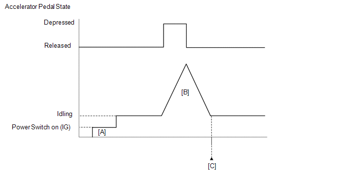 During charge control, the engine speed is set at idle. Therefore, the engine speed will not increase when the accelerator pedal is depressed. In this case, perform step [B] after charge control has completed.