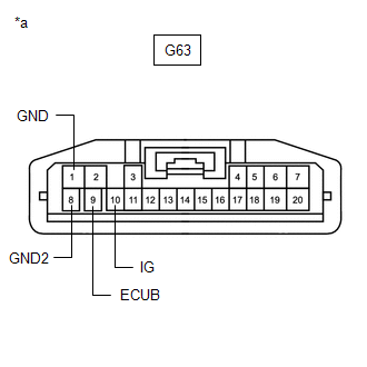 | G63-9 (ECUB) - Body ground | Power switch off | 11 to 14 V |
