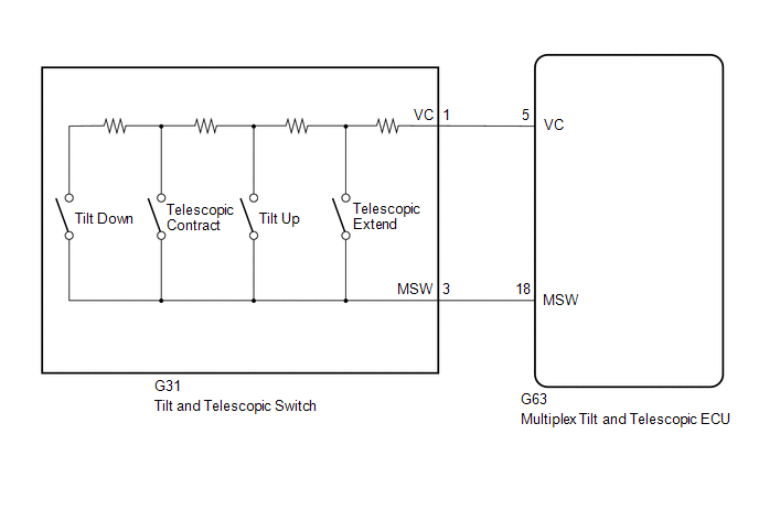 | 2. | CHECK HARNESS AND CONNECTOR (MULTIPLEX TILT AND TELESCOPIC ECU - TILT AND TELESCOPIC SWITCH) |