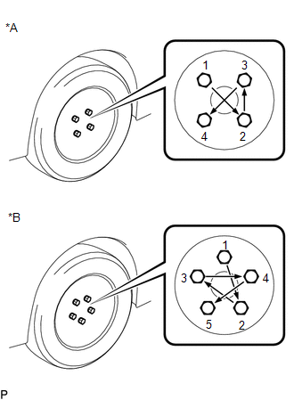 (c) Lower the vehicle then fully tighten the axle hub nuts in the order shown