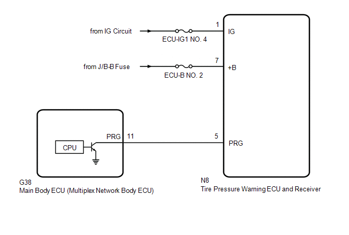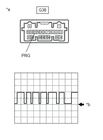| G38-11 (PRG) - Body ground | Power switch on (IG) | 9.8 V or higher |