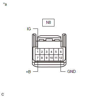 | N8-1 (IG) - Body ground | Power switch on (IG) | 11 to 14 V |
