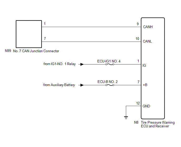 | NG | | REPAIR OR REPLACE CAN BRANCH LINES OR CONNECTOR (TIRE PRESSURE WARNING ECU AND RECEIVER) |