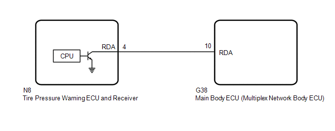 The main body ECU (multiplex network body ECU) and tire pressure warning ECU and receiver communicate by direct line. If a malfunction occurs in this communication signal, B1247 is output by the main body ECU (multiplex network body ECU).
