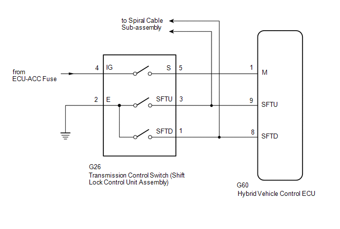 | 6. | CHECK HARNESS AND CONNECTOR (HYBRID VEHICLE CONTROL ECU - TRANSMISSION CONTROL SWITCH (SHIFT LOCK CONTROL UNIT ASSEMBLY)) |