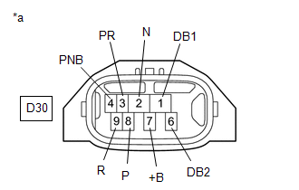 | (a) Disconnect the D30 shift lever position sensor connector. |