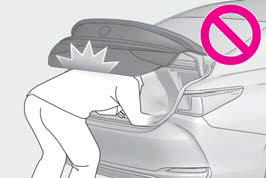 ■Trunk easy closer (vehicles with power trunk lid) In the event that the trunk lid is left slightly open, the trunk easy closer will automatically close it to the fully closed position. It takes several seconds before the trunk easy closer begins to operate. Be careful not to catch fingers or anything else in the trunk lid, as this may cause bone fractures or other serious injuries.