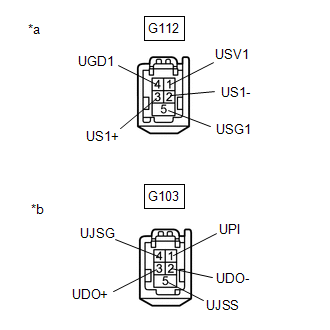 | G103-1 (UPI) - G103-4 (UJSG) | Engine switch on (ACC) | 4.5 to 5.5 V |