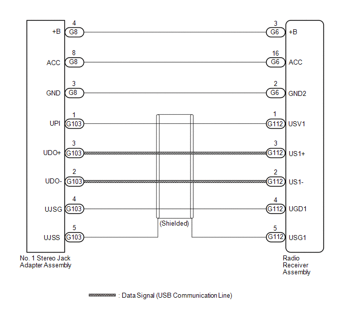 | (a) Disconnect the G103 and G8 No. 1 stereo jack adapter assembly connectors. |