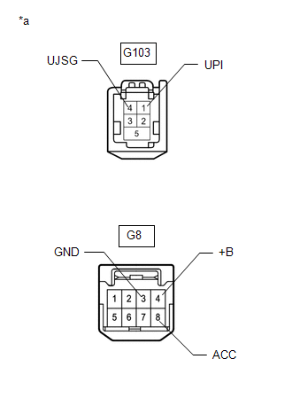 | G103-1 (UPI) - G103-4 (UJSG) | Power switch on (ACC) | 4.5 to 5.5 V |