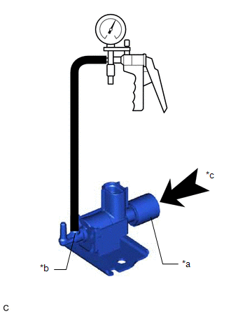 | (1) When vacuum is applied to the port (E), check that air is sucked into the filter. If the result is not as specified, replace the No. 1 vacuum switching valve assembly (for ACIS). |