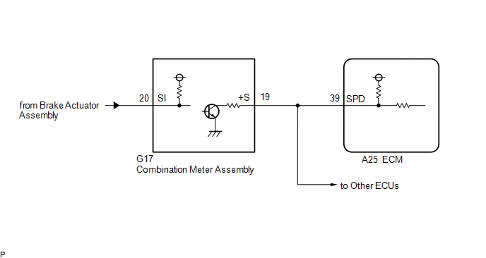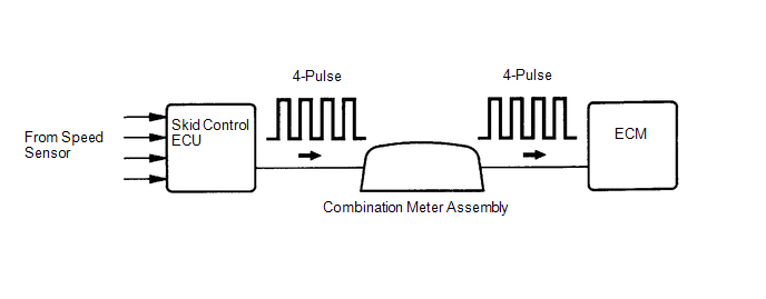 The signal is changed to a pulse signal at the transistor in the combination meter assembly. Each ECU controls the respective system based on the pulse signal.