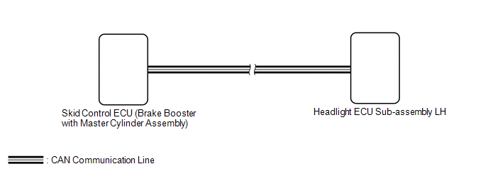 The headlight ECU sub-assembly LH receives speed signals from the skid control ECU (brake booster with master cylinder assembly) via CAN communication and performs light control.