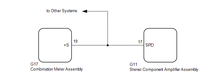 | (a) Check the input waveform. (1) Remove the stereo component amplifier assembly with the connector(s) still connected. (2) Connect an oscilloscope to terminal G11-17 (SPD) and body ground. (3) Turn the engine switch on (IG). (4) Turn a wheel slowly. (5) Check the signal waveform according to the condition(s) in the table below.