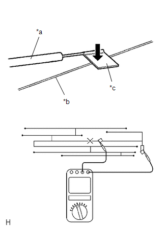 | (a) Check the continuity of the antenna. HINT: Check for continuity at the center of each antenna wire as shown in the illustration. NOTICE: