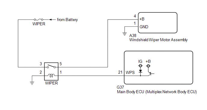 | 1 (WIPER relay) - G37-21 (WPS) | Always | Below 1 Ω |
